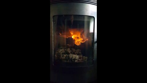 Через некоторое время после закладки и поджигания дров картинка пламени расслаивается на три горизонтальных яруса: снизу горячие угли, посредине прозрачный воздух, и в самом верху топливника появляется медленно колеблющееся облако полупрозрачного пламени.Это происходит потому, что при высокой температуре в нижней части футерованного топливника и дефиците первичного воздуха происходит пиролиз древесины. Пиролизные газы возгоняются не зажигаясь, поднимаются вверх, но вспыхивают только в самом верху, куда через форсунки подается предварительно нагретый вторичный воздух.